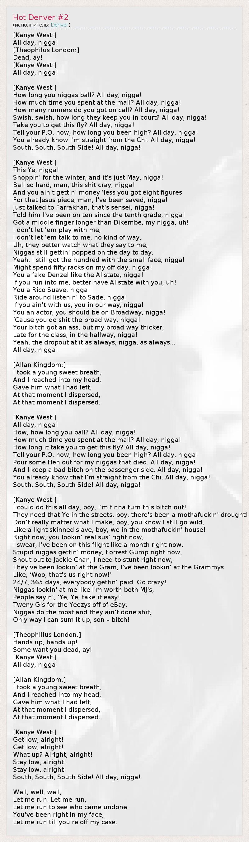 А как ты думаешь, о чем песня "Hot Denver #2" ?