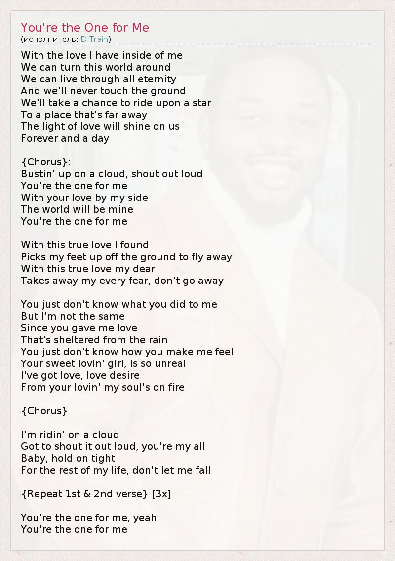 А как ты думаешь, о чем песня "You're the One for Me" ?