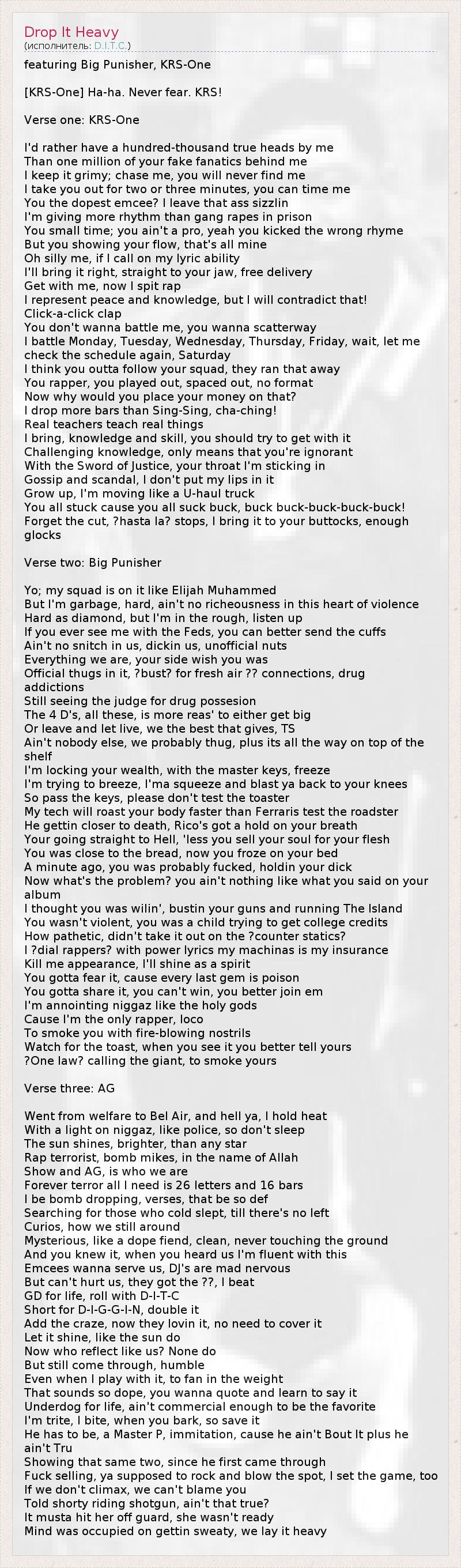 А как ты думаешь, о чем песня "Drop It Heavy" ?