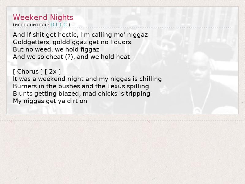 А как ты думаешь, о чем песня "Weekend Nights" ?