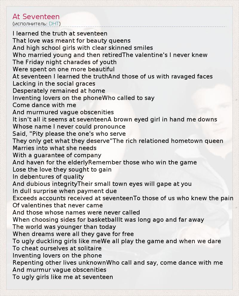 А как ты думаешь, о чем песня "At Seventeen" ?