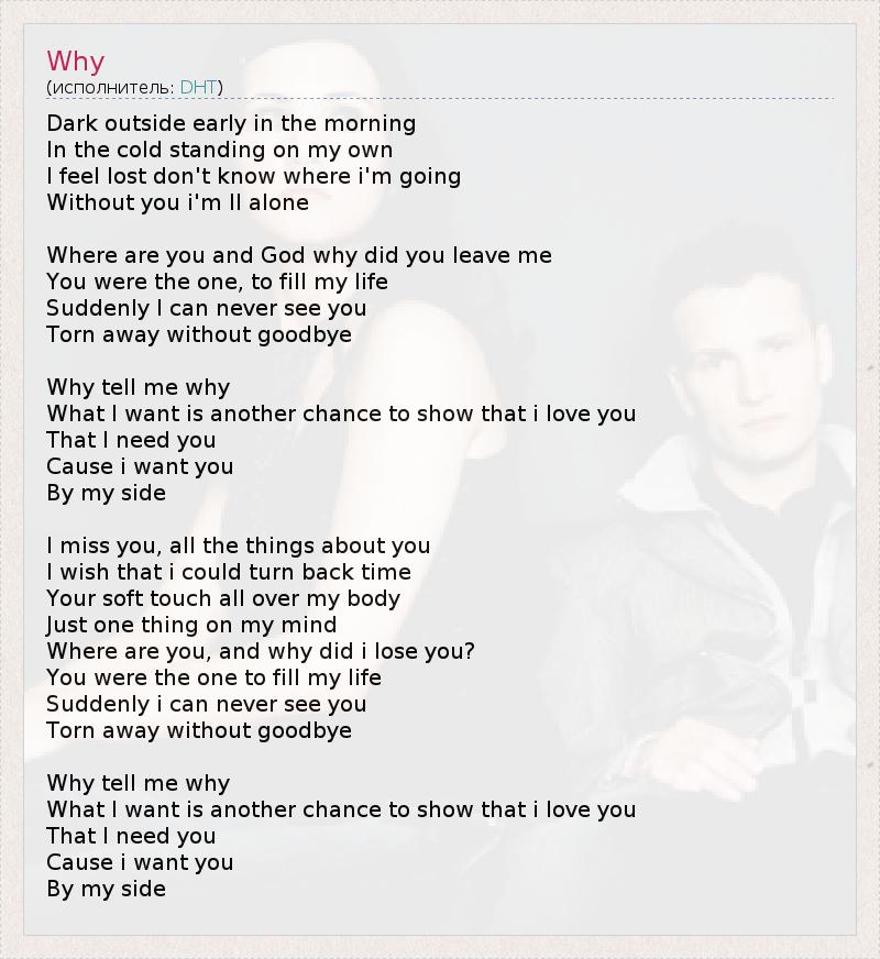 Это интересно:http://userserve-ak.last.fm/serve/_/67722016/DHT+_featuring_Edmee.jpg D.H.T. (муз. стиль: танцевальный, хаус, транс) бельгийский дуэт, в состав которого вошли певица Эдми Даэнен(фр. Edmée Daenen), (род. 25 марта 1985, Кортрейк, Бельгия) и главный продюсер, автор текстов и композитор Флор Тьюв(фр. Flor Theeuwes)(род. 28 августа 1976, Тюрнхаут, Бельгия) В 1995 году D.H.T. начала свой... продолжение