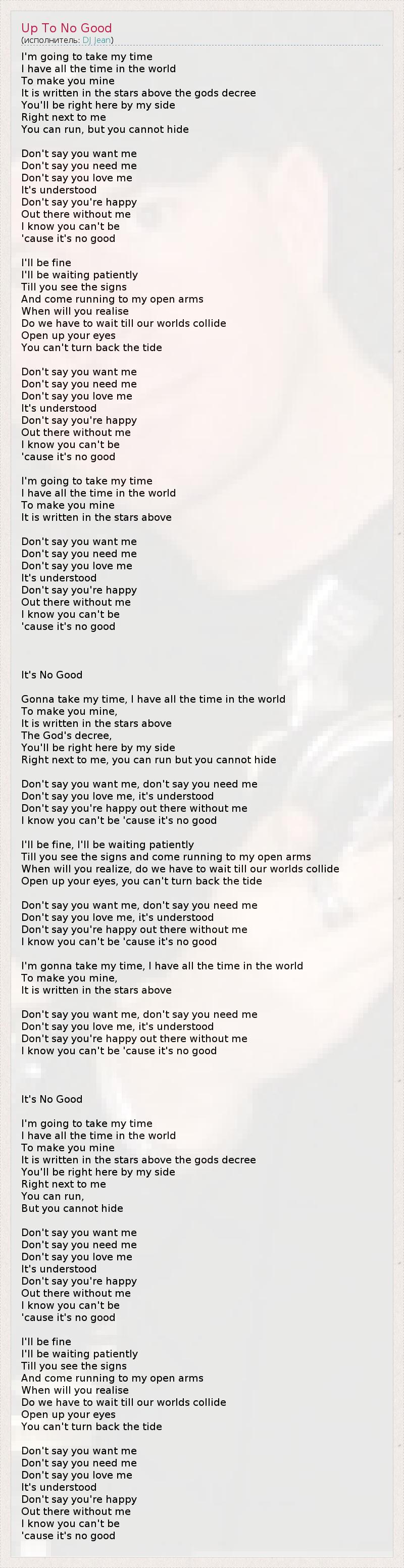 А как ты думаешь, о чем песня "Up To No Good" ?