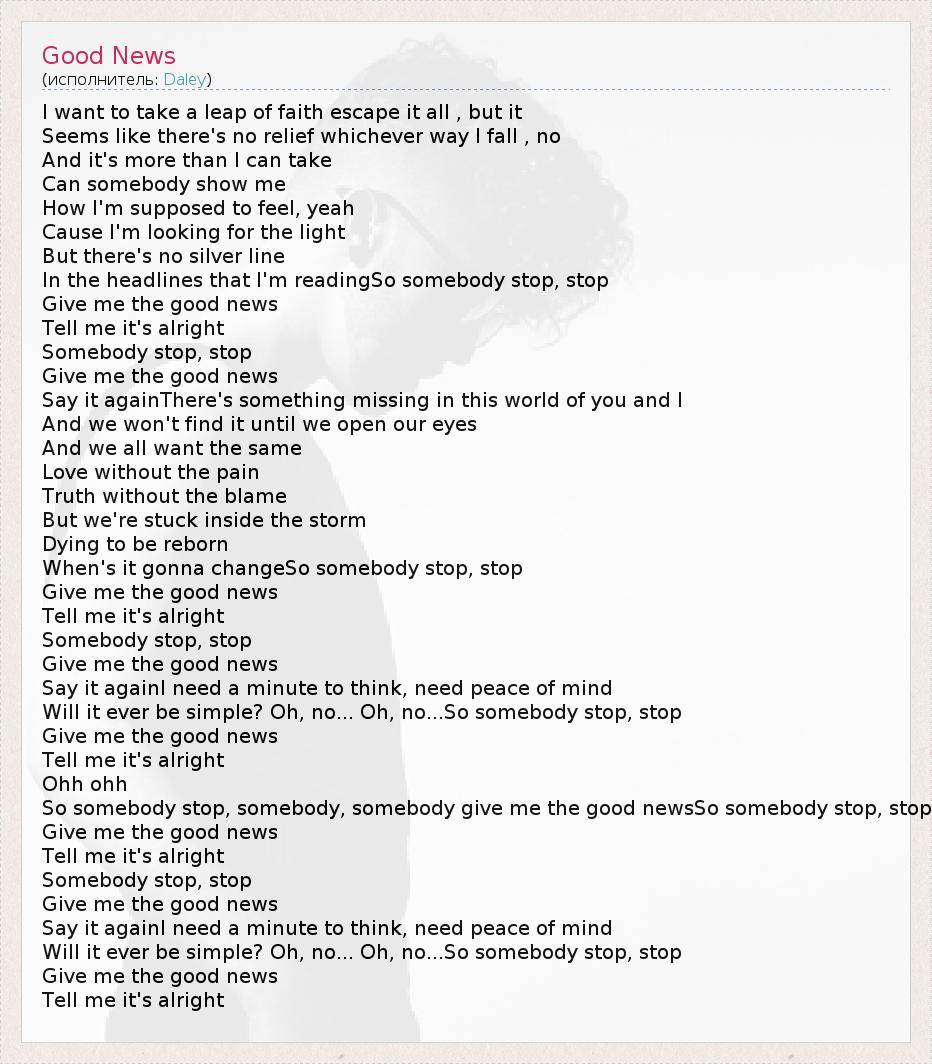 So somebody stop, somebody, somebody give me the good newsSo somebody stop, stop