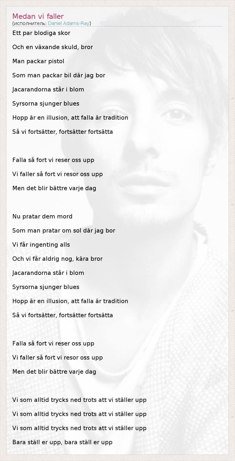 А как ты думаешь, о чем песня "Medan vi faller" ?