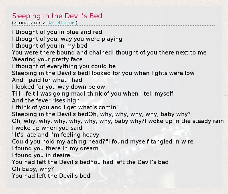 А как ты думаешь, о чем песня "Sleeping in the Devil's Bed" ?