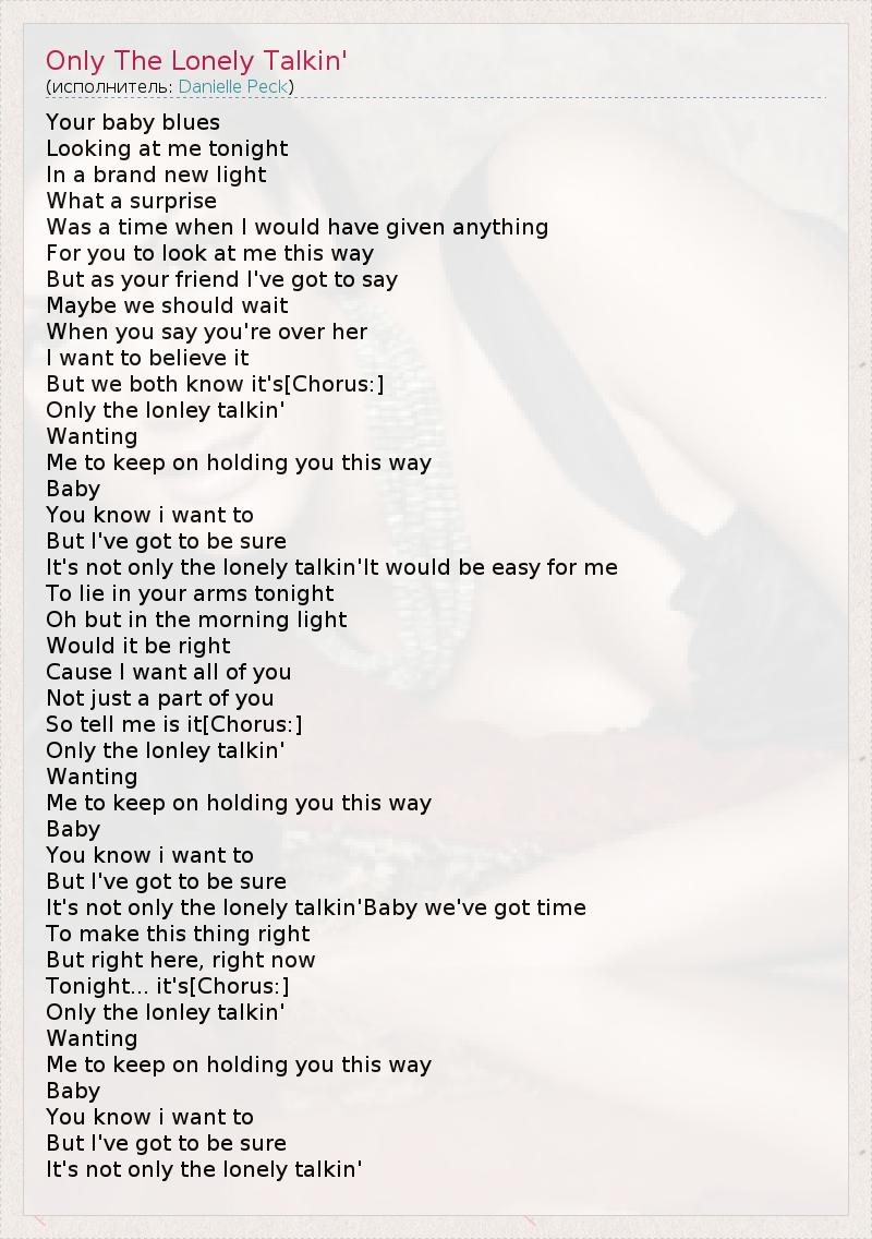 А как ты думаешь, о чем песня "Only The Lonely Talkin'" ?