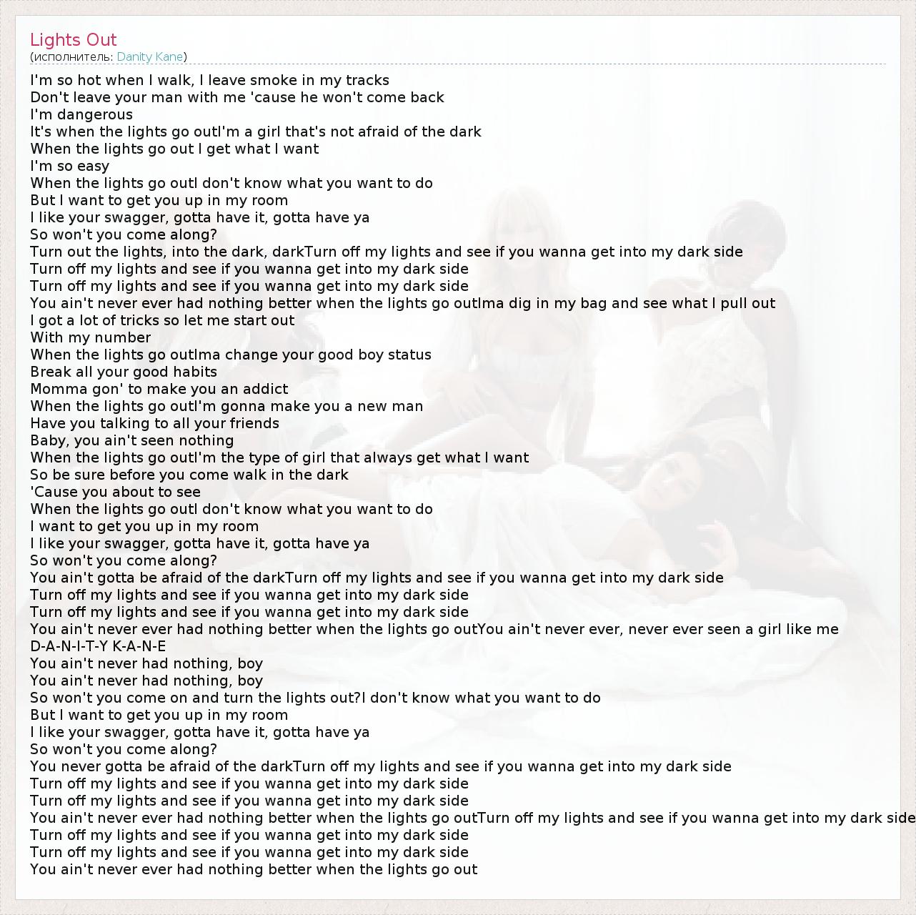 It's when the lights go outI'm a girl that's not afraid of the dark