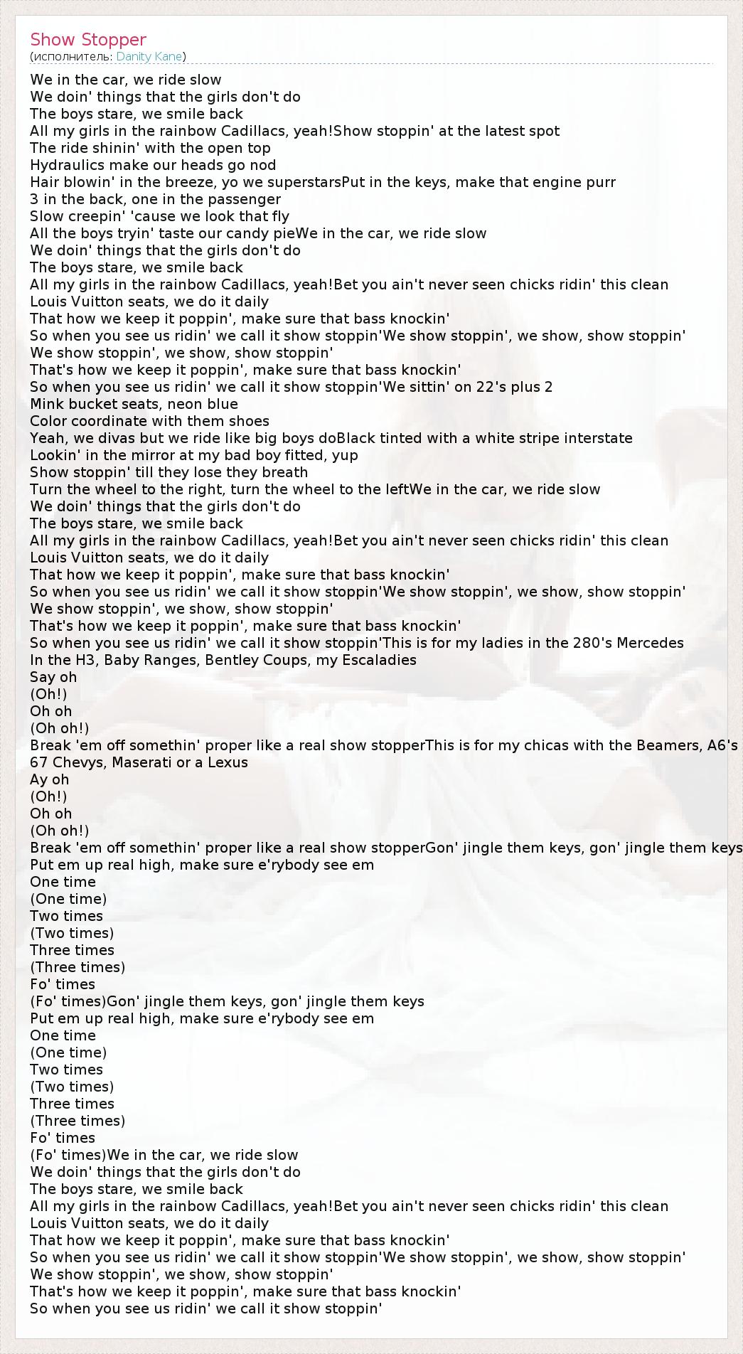 А как ты думаешь, о чем песня "Show Stopper" ?
