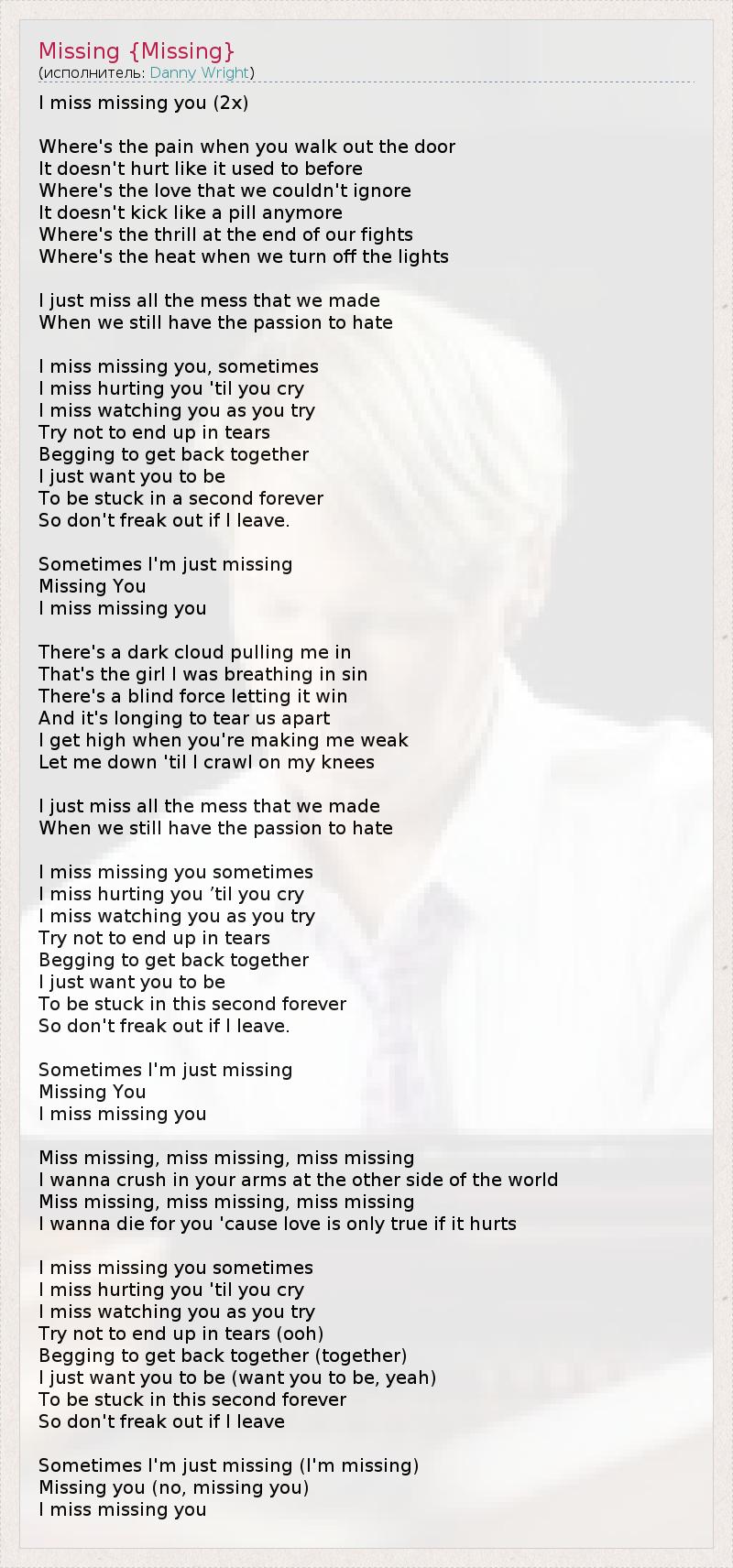 А как ты думаешь, о чем песня "Missing {Missing}" ?
