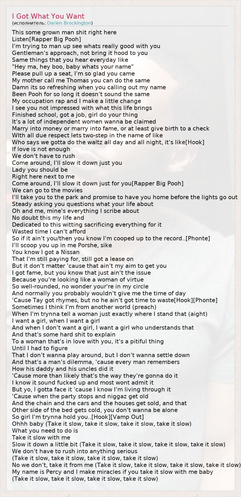 А как ты думаешь, о чем песня "I Got What You Want" ?