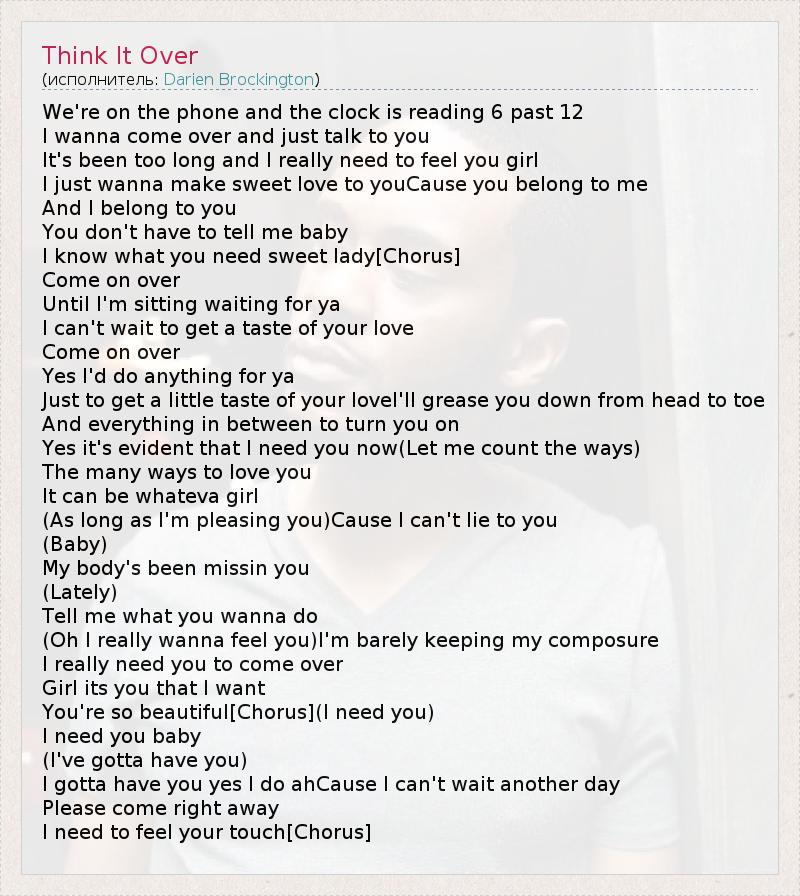 А как ты думаешь, о чем песня "Think It Over" ?
