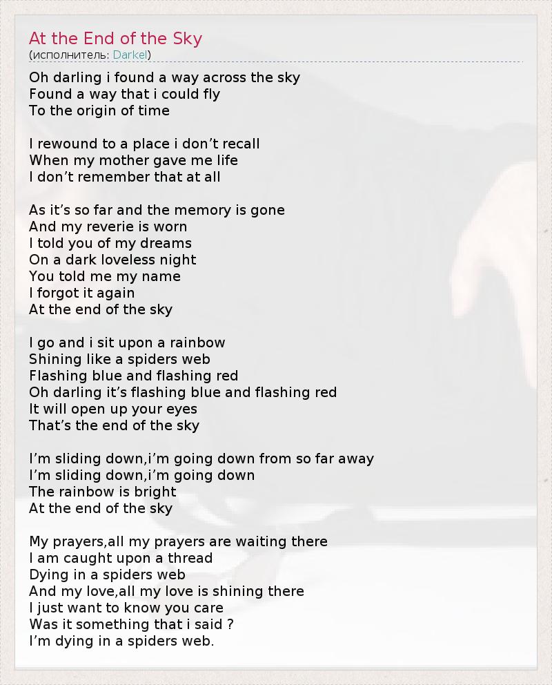 А как ты думаешь, о чем песня "At the End of the Sky" ?