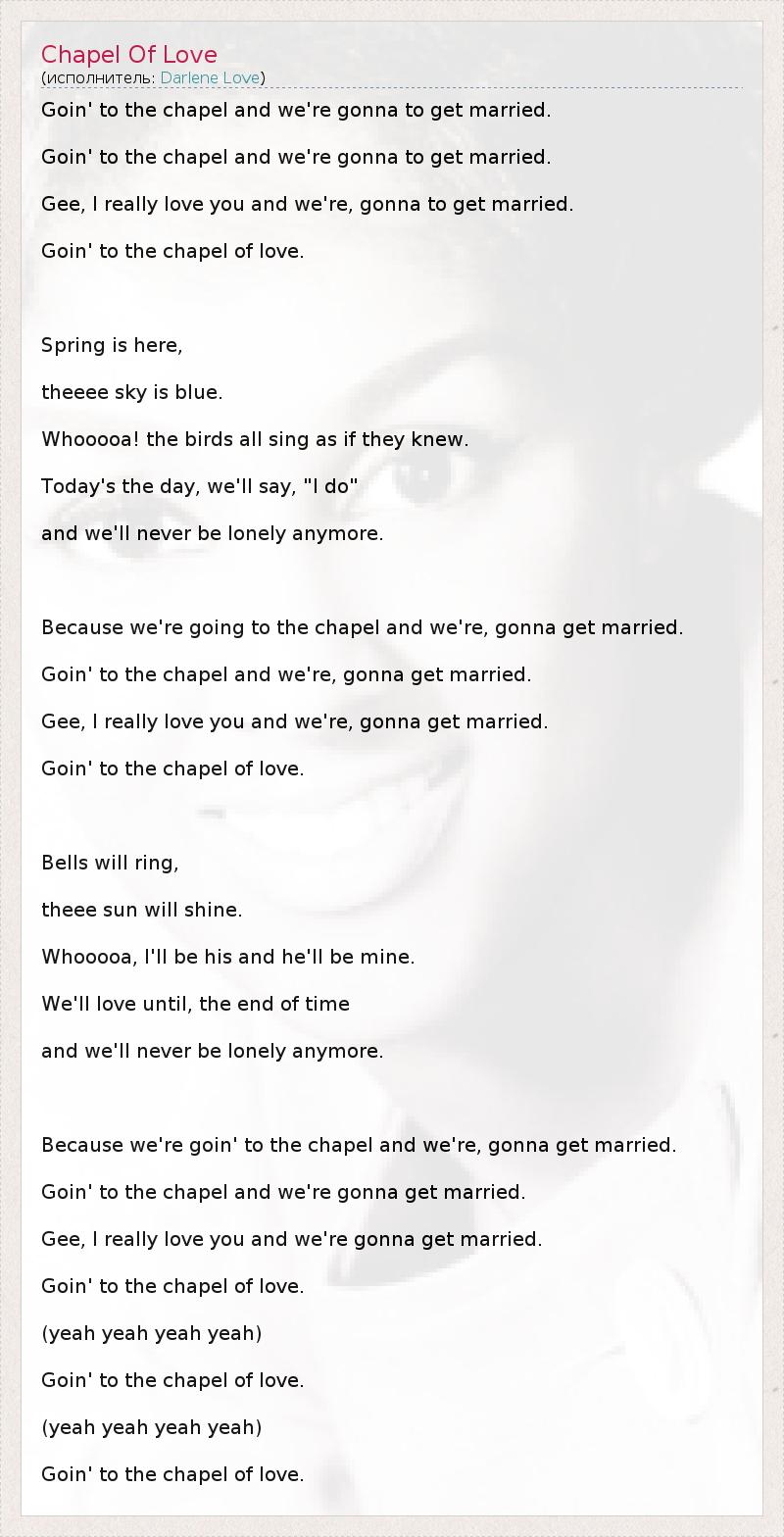 А как ты думаешь, о чем песня "Chapel Of Love" ?