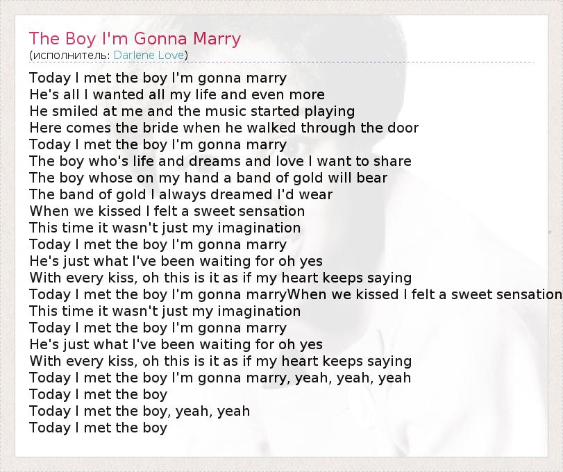 А как ты думаешь, о чем песня "The Boy I'm Gonna Marry" ?