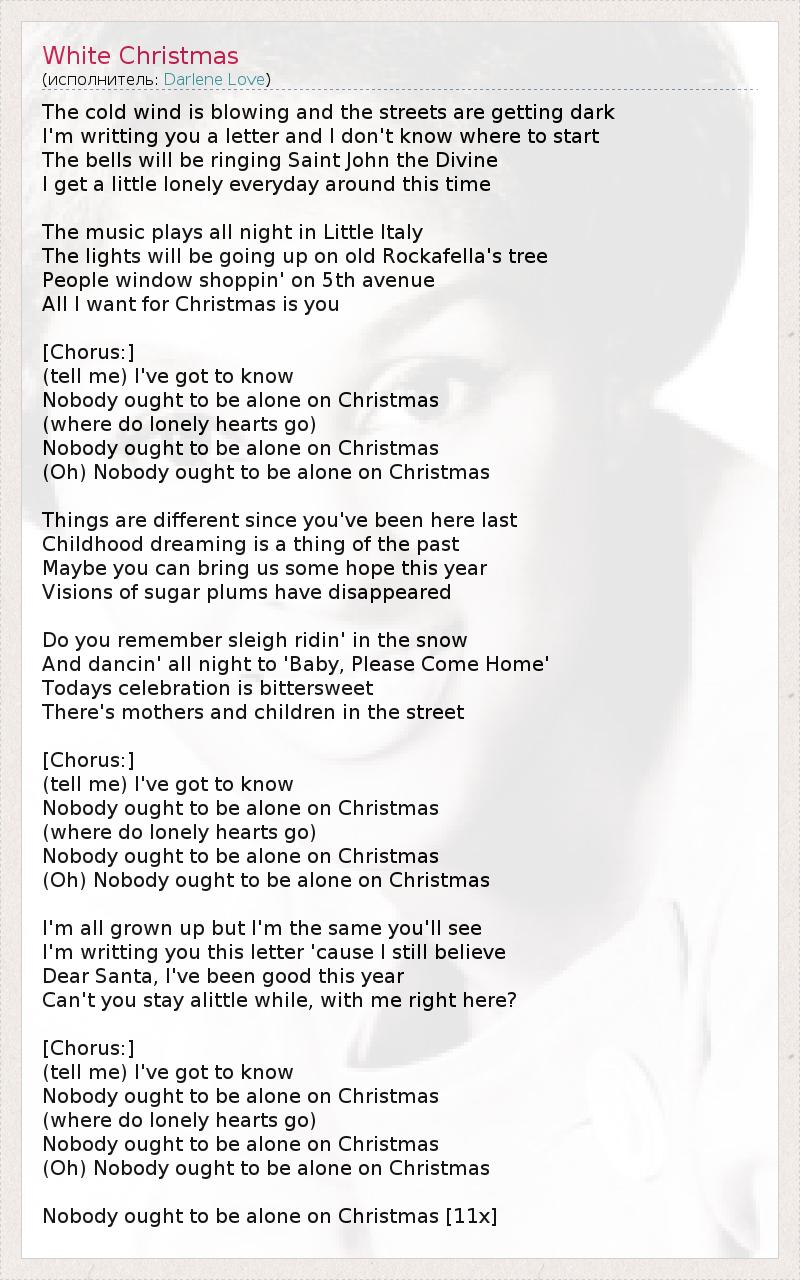 Это интересно:Дарлин Лав (англ. Darlene Love, настоящее имя Дарлин Райт, англ. Darlene Wright; род. 26 июля 1941, Лос Анджелес, Калифорния, США) — американская поп-певица и актриса.Детство и начало карьеры:Дарлин Лав родилась в восточном Лос-Анджелесе 26 июля 1938 года. Её отец, Джо Райт, был священником, в семье было пятеро детей. Вскоре Джо предложили собственную церковь, и семья переехала в Сан-Антонио, штат Техас.... продолжение