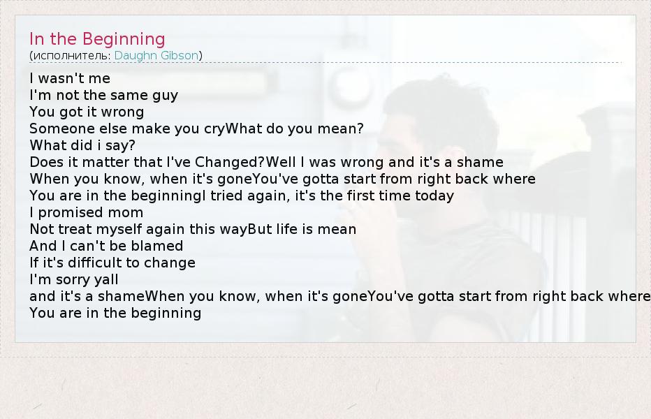 I wasn't me I'm not the same guy You got it wrong Someone else make you cryWhat do you mean? What did i say? Does it matter that I've Changed?Well I was wrong and it's a shame When you know, when it's goneYou've gotta start from right back where You are in the beginningI tried again, it's the first time today I promised mom Not treat myself again this wayBut life is mean And I can't be blamed If it's difficult to change I'm sorry yall and it's a shameWhen you know, when it's goneYou've gotta start from right back where You are in the beginning