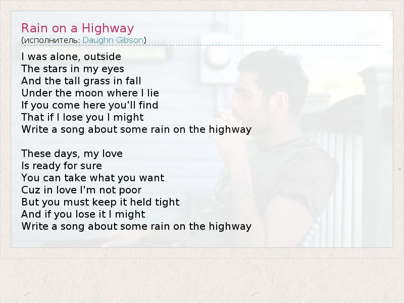 А как ты думаешь, о чем песня "Rain on a Highway" ?