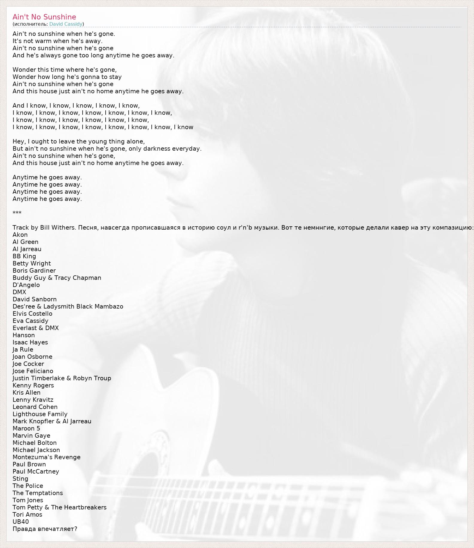 А как ты думаешь, о чем песня "Ain't No Sunshine" ?
