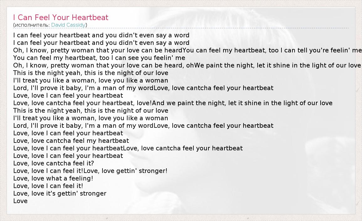 А как ты думаешь, о чем песня "I Can Feel Your Heartbeat" ?