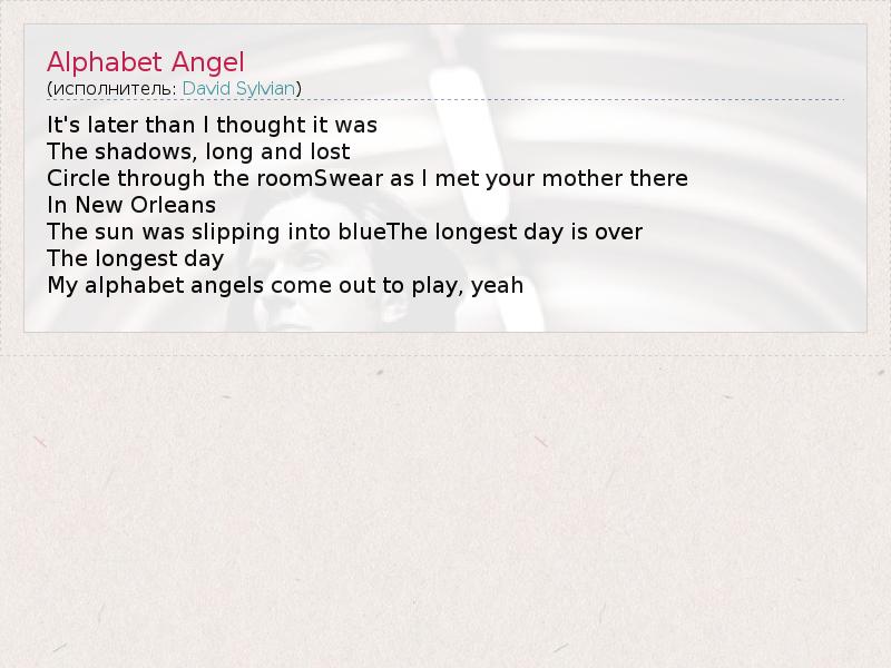 А как ты думаешь, о чем песня "Alphabet Angel" ?