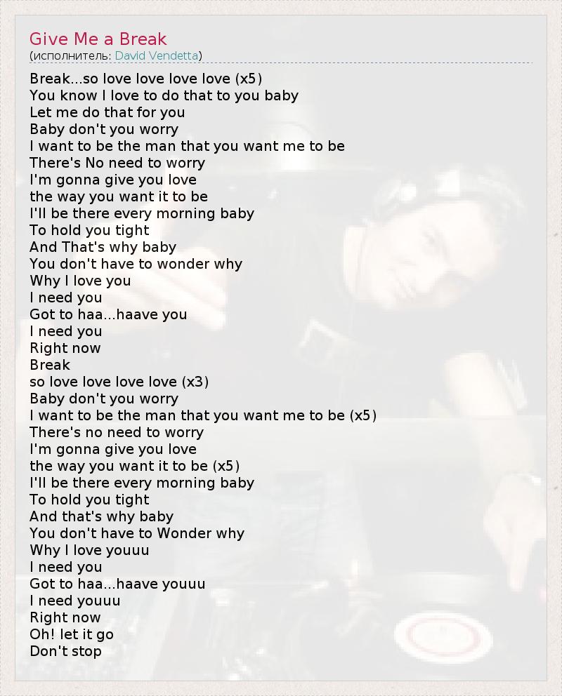 А как ты думаешь, о чем песня "Give Me a Break" ?