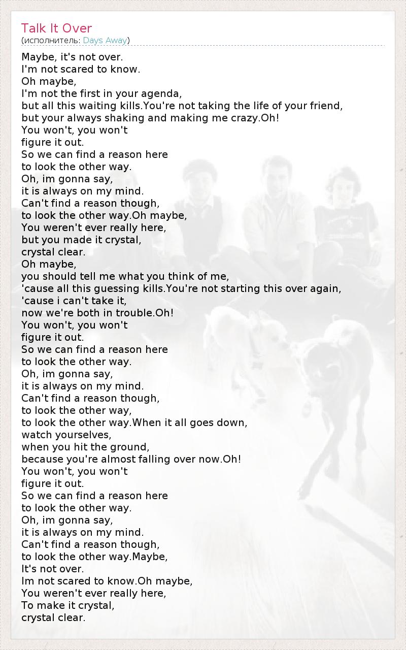 А как ты думаешь, о чем песня "Talk It Over" ?