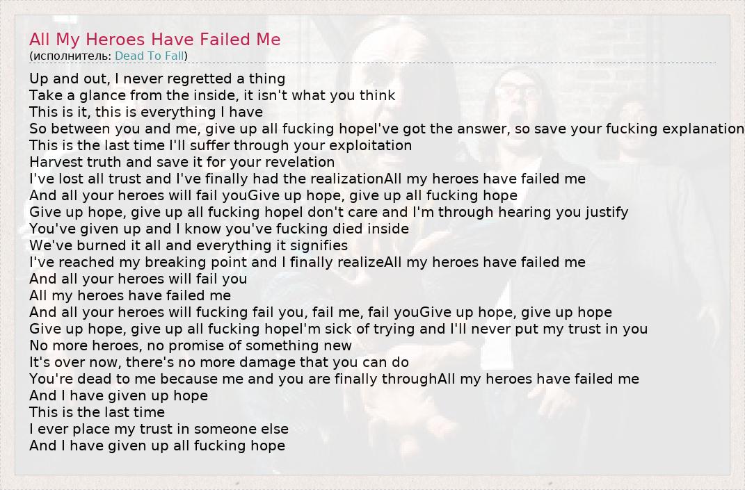 А как ты думаешь, о чем песня "All My Heroes Have Failed Me" ?