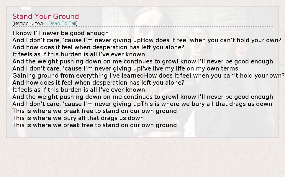А как ты думаешь, о чем песня "Stand Your Ground" ?