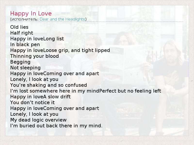 А как ты думаешь, о чем песня "Happy In Love" ?