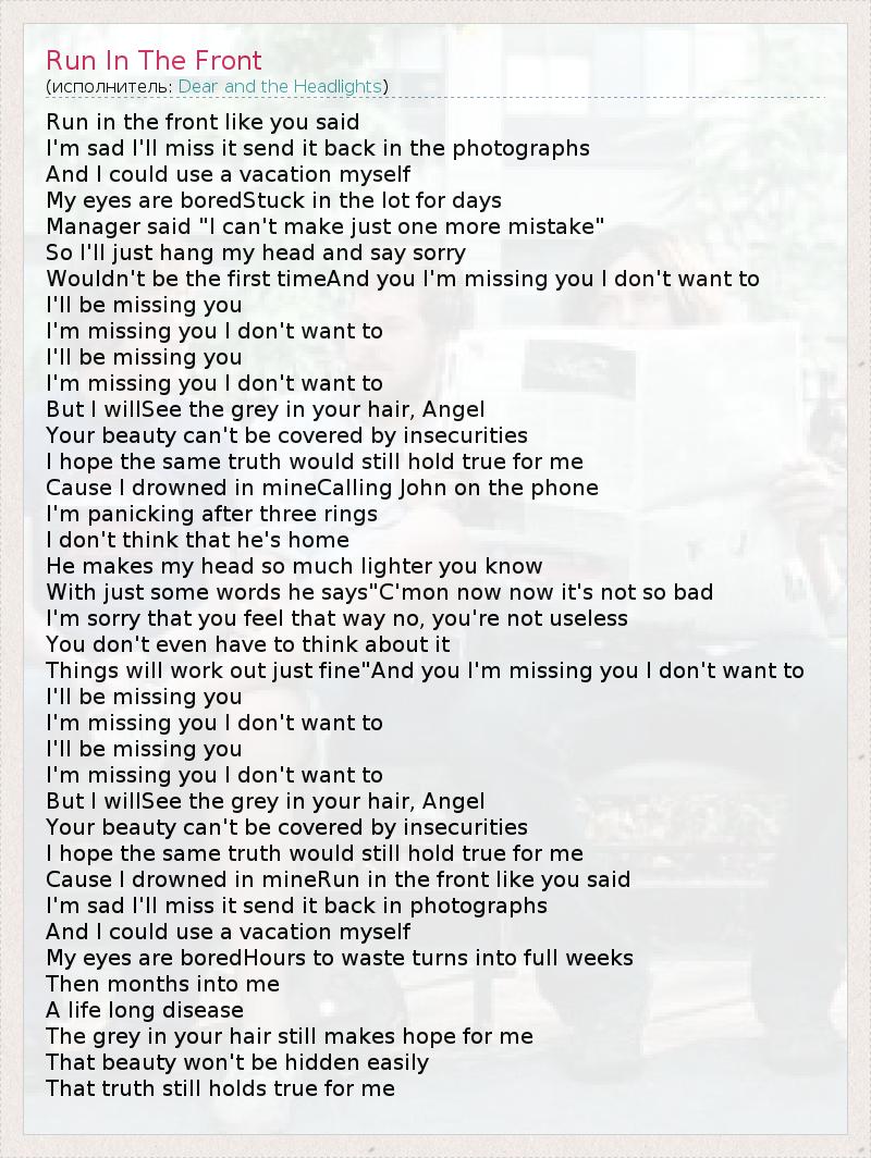 А как ты думаешь, о чем песня "Run In The Front" ?