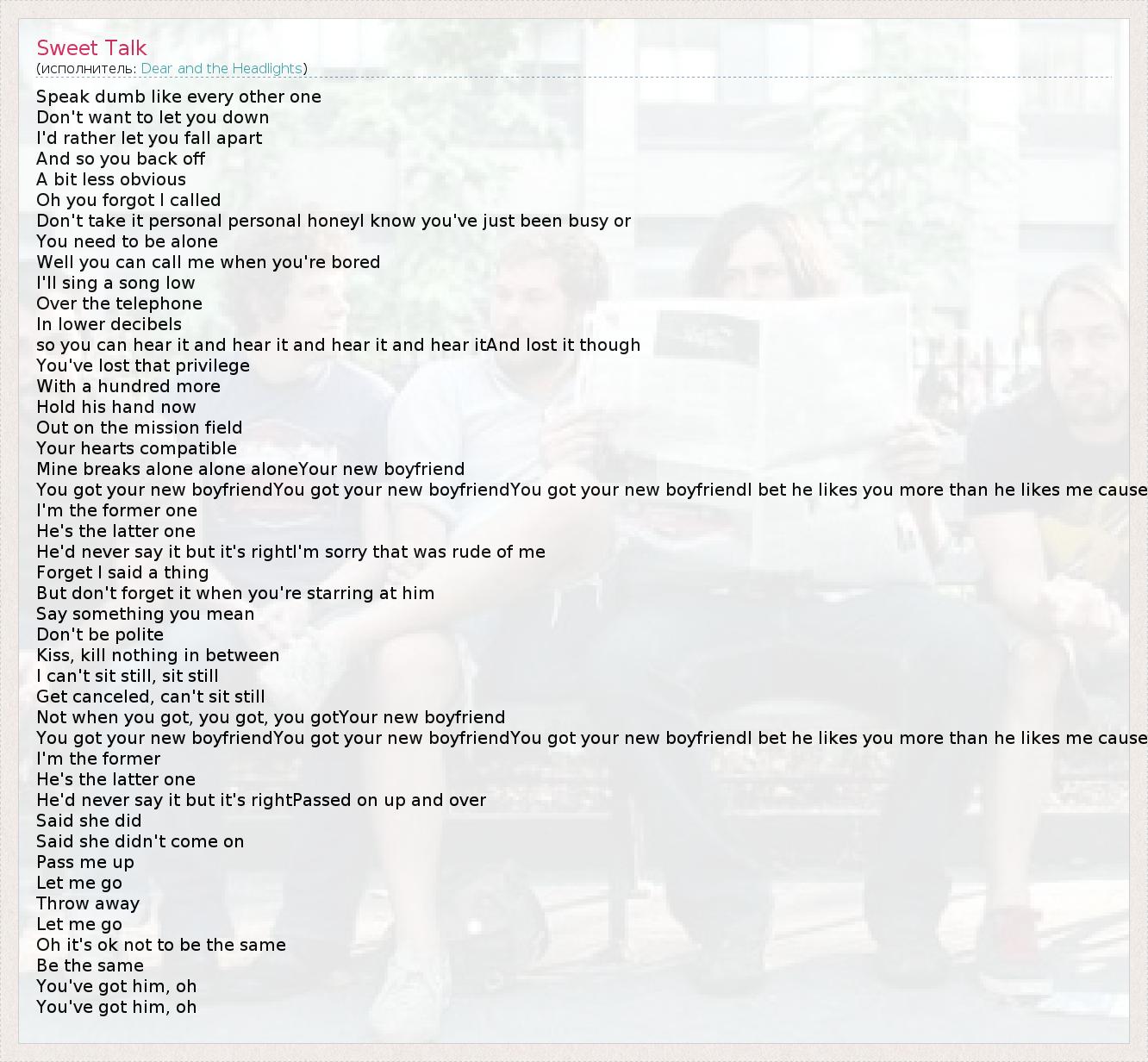 А как ты думаешь, о чем песня "Sweet Talk" ?