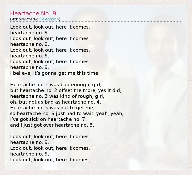 А как ты думаешь, о чем песня "Heartache No. 9" ?