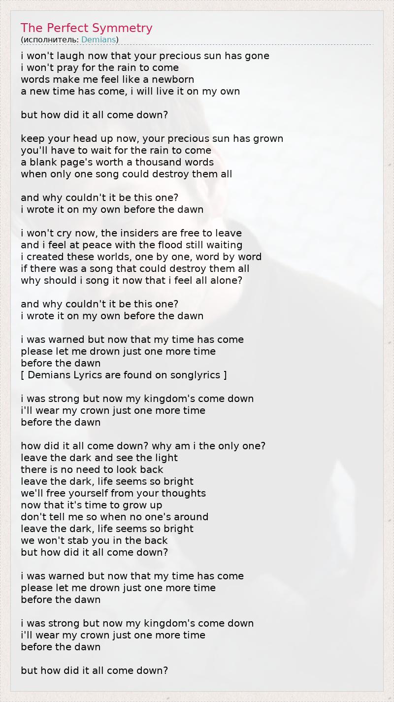 А как ты думаешь, о чем песня "The Perfect Symmetry" ?