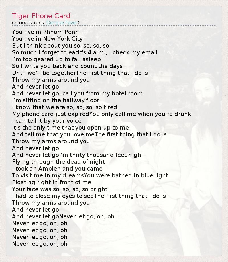 А как ты думаешь, о чем песня "Tiger Phone Card" ?