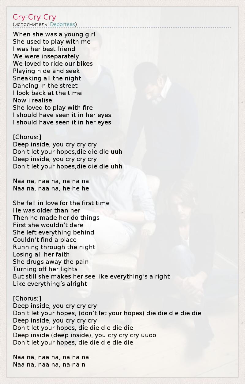 А как ты думаешь, о чем песня "Cry Cry Cry" ?