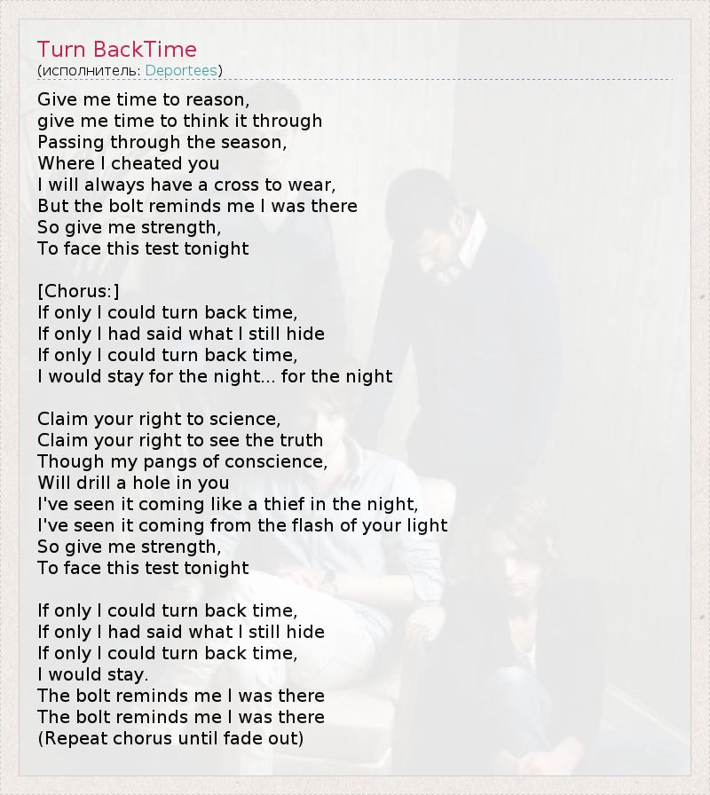 А как ты думаешь, о чем песня "Turn BackTime" ?