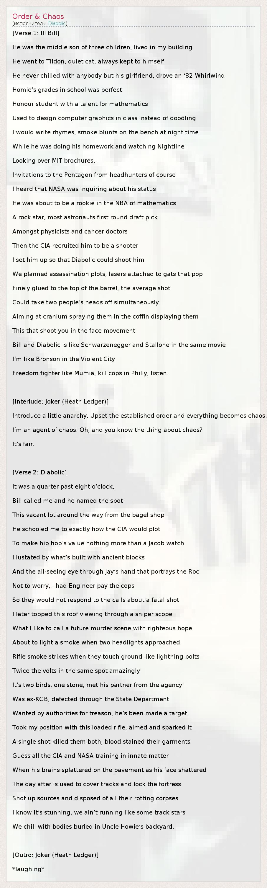 А как ты думаешь, о чем песня "Order & Chaos" ?