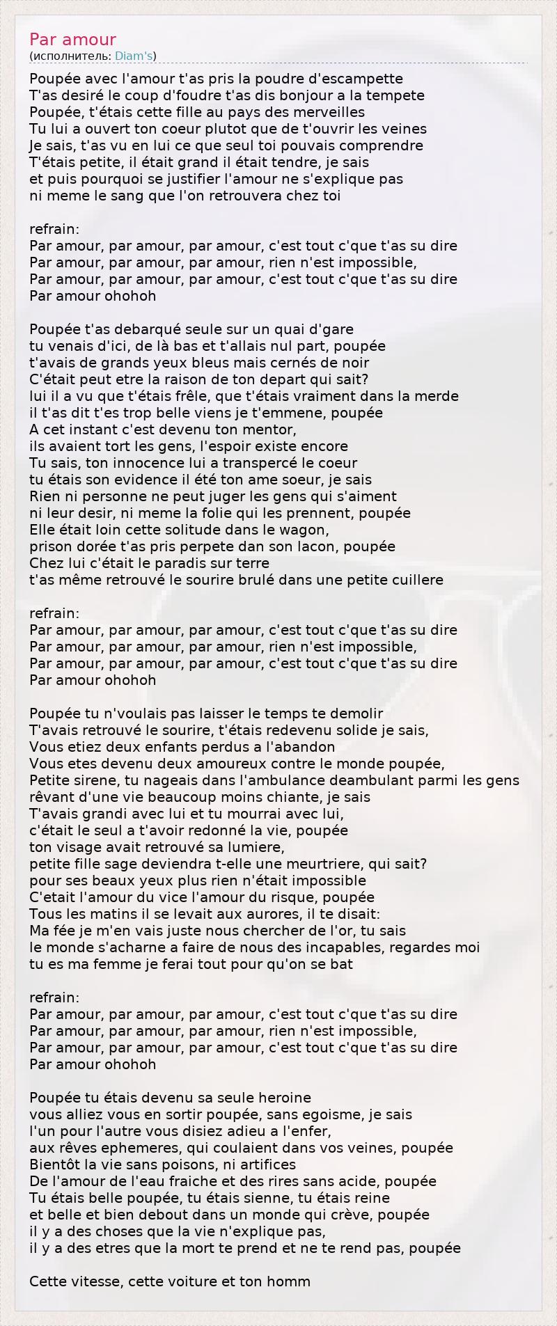 Par amour, par amour, par amour, c'est tout c'que t'as su dire
