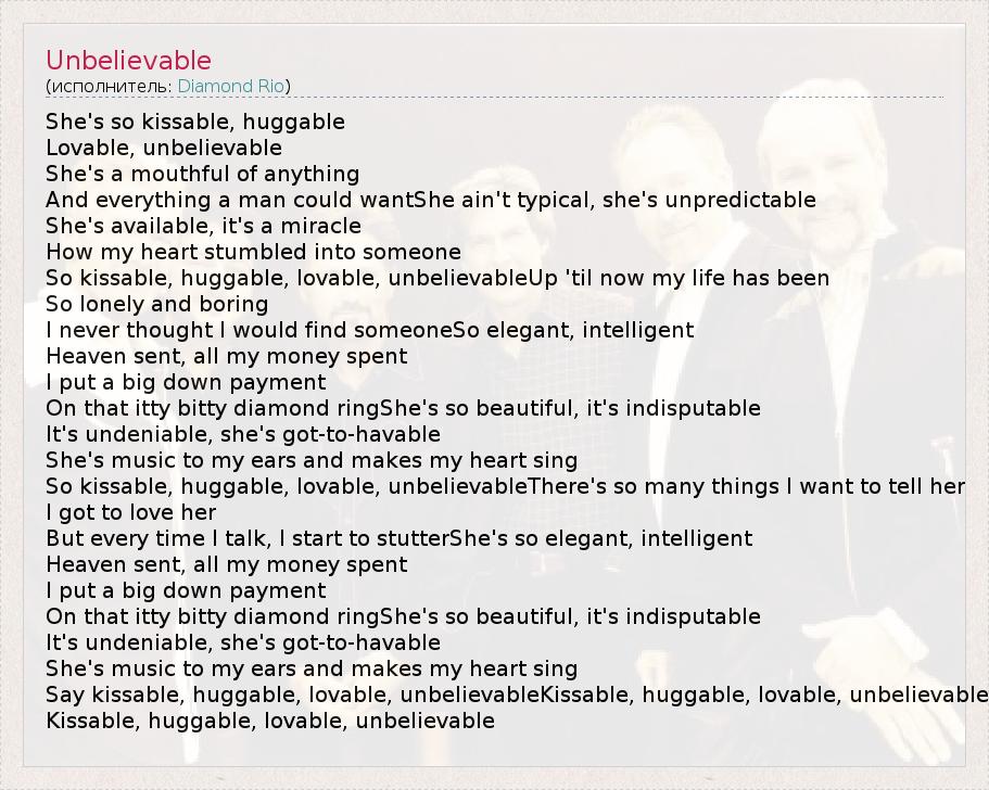 Say kissable, huggable, lovable, unbelievableKissable, huggable, lovable, unbelievable