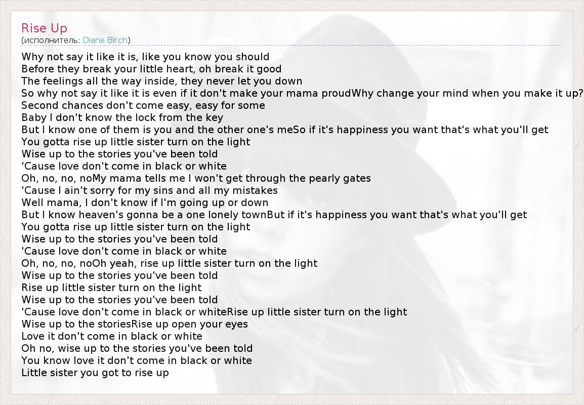 Oh, no, no, noOh yeah, rise up little sister turn on the light