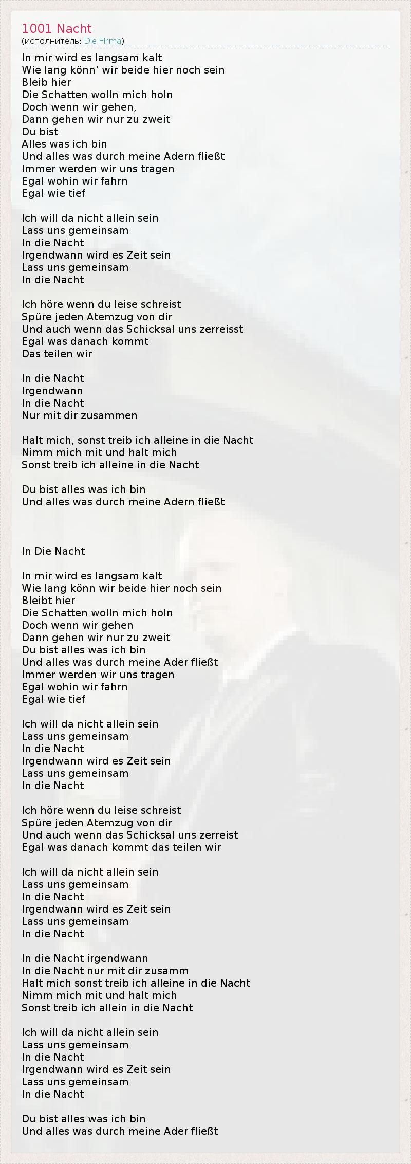 А как ты думаешь, о чем песня "1001 Nacht" ?