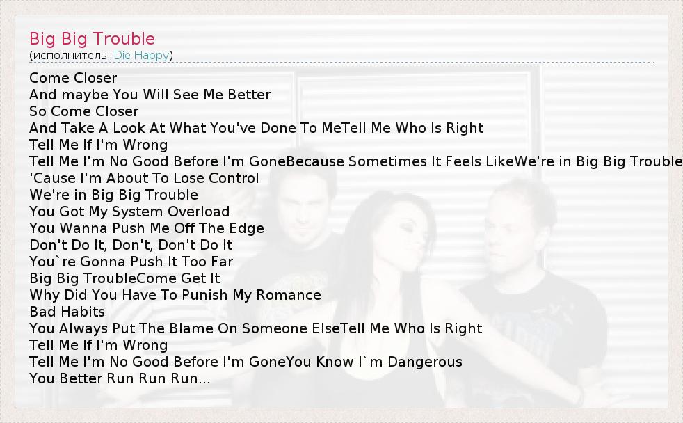 А как ты думаешь, о чем песня "Big Big Trouble" ?