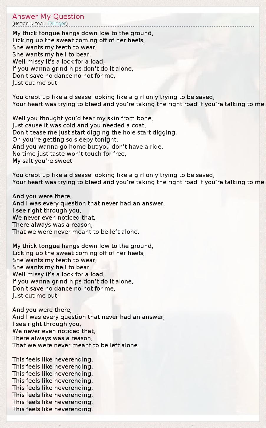 А как ты думаешь, о чем песня "Answer My Question" ?