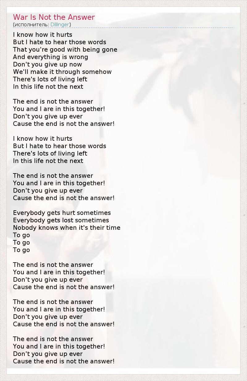 А как ты думаешь, о чем песня "War Is Not the Answer" ?