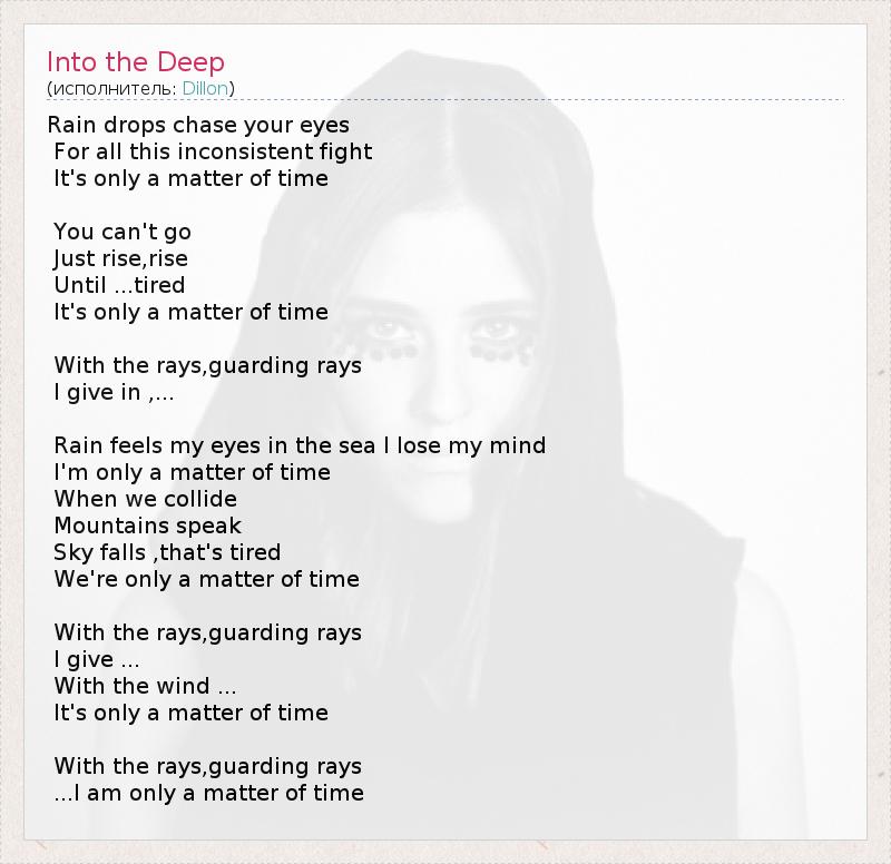 А как ты думаешь, о чем песня "Into the Deep" ?