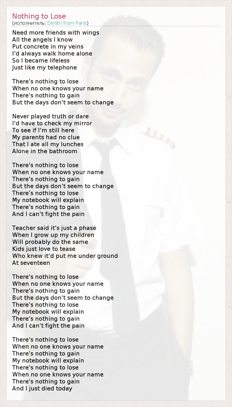 А как ты думаешь, о чем песня "Nothing to Lose" ?