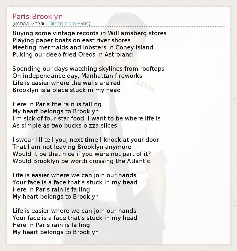 А как ты думаешь, о чем песня "Paris-Brooklyn" ?