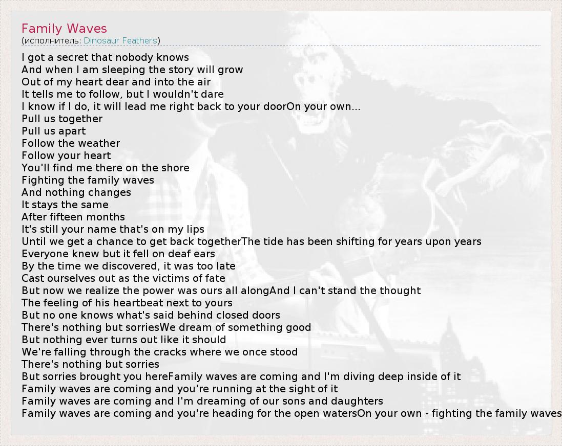 Family waves are coming and you're heading for the open watersOn your own - fighting the family waves