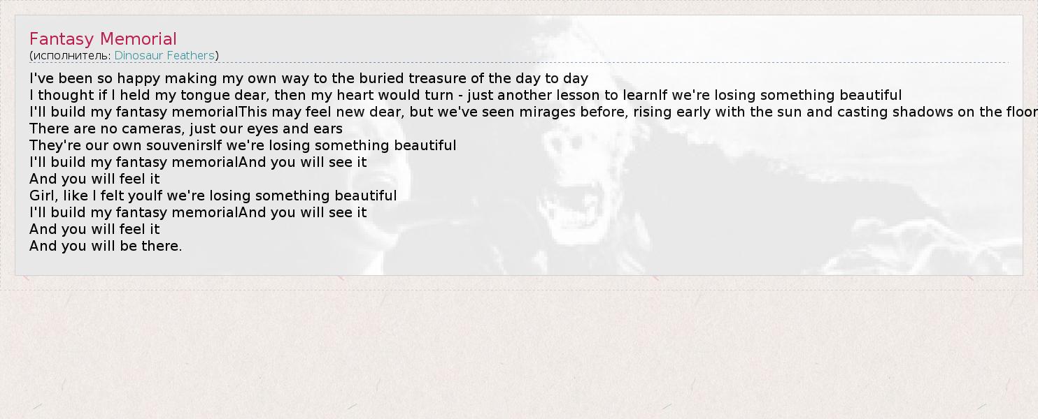 А как ты думаешь, о чем песня "Fantasy Memorial" ?